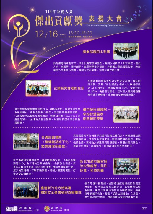【公告】114年公務人員傑出貢獻獎表揚大會