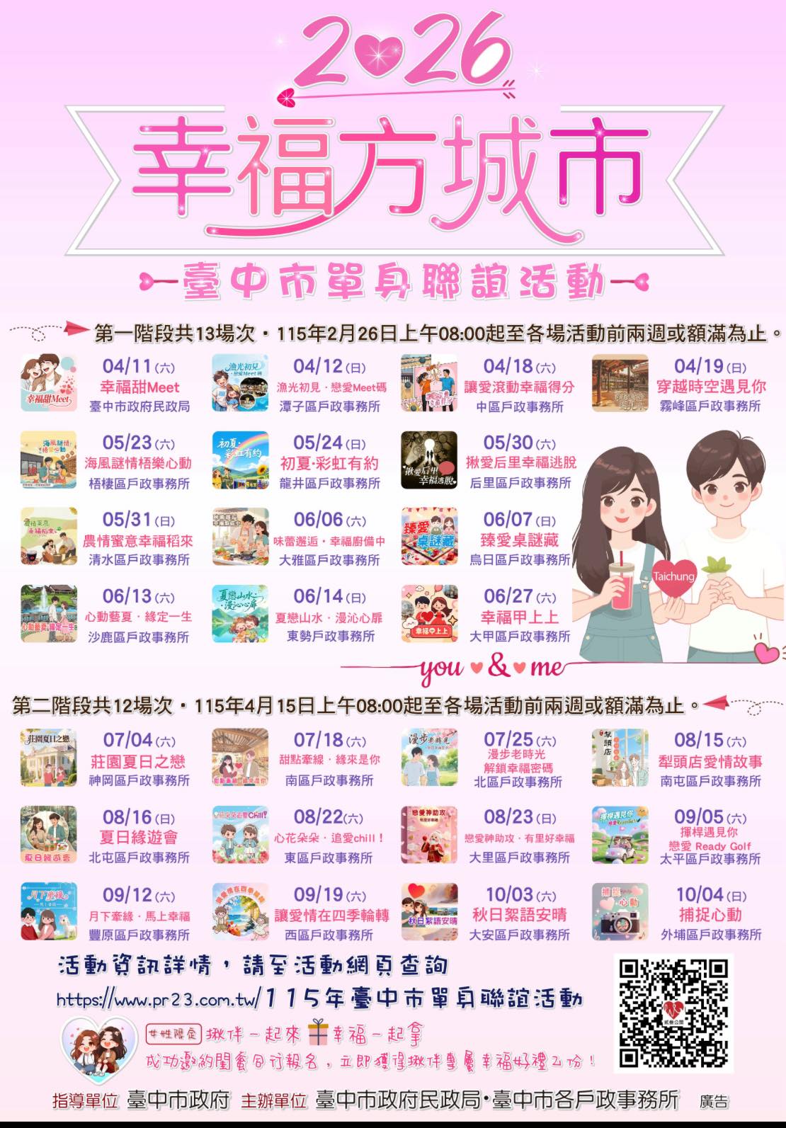 活動專屬網站:https://www.pr23.com.tw/115年臺中市單身聯誼活動