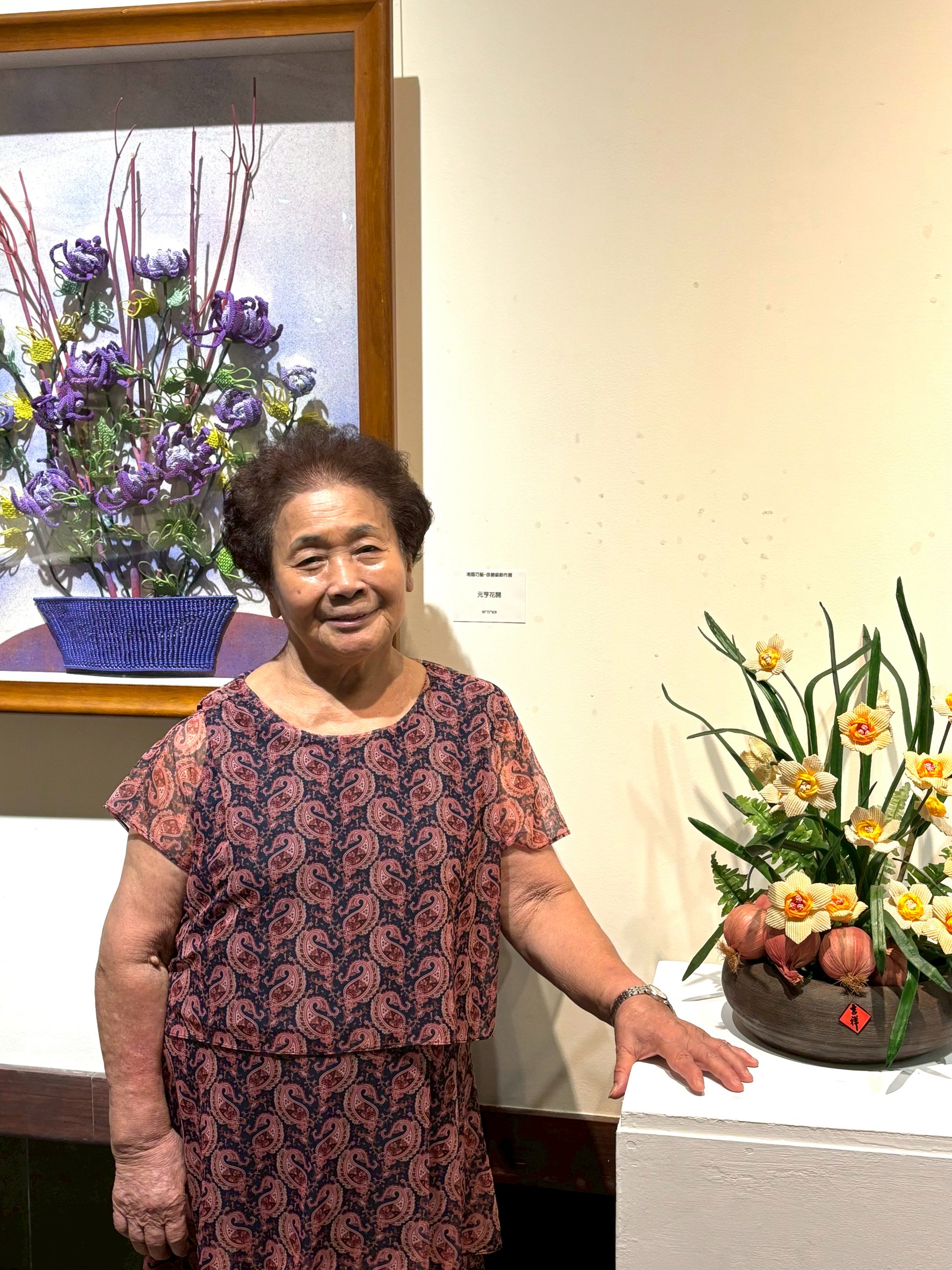 徐碧姿 本所於4月至6月邀請徐老師蒞臨展出「結藝畫」作品 年逾八十多歲的徐老師,依然精神奕奕、創作不輟,將一生對藝術的熱愛,化為一件件細膩動人的作品 不僅如此,徐老師長年投入教學,桃李滿天下,將結藝之美傳承給更多人。 每一件作品,都是歲月的累積與生命的展現,誠摯邀請您一同前來感受這份溫暖與感動